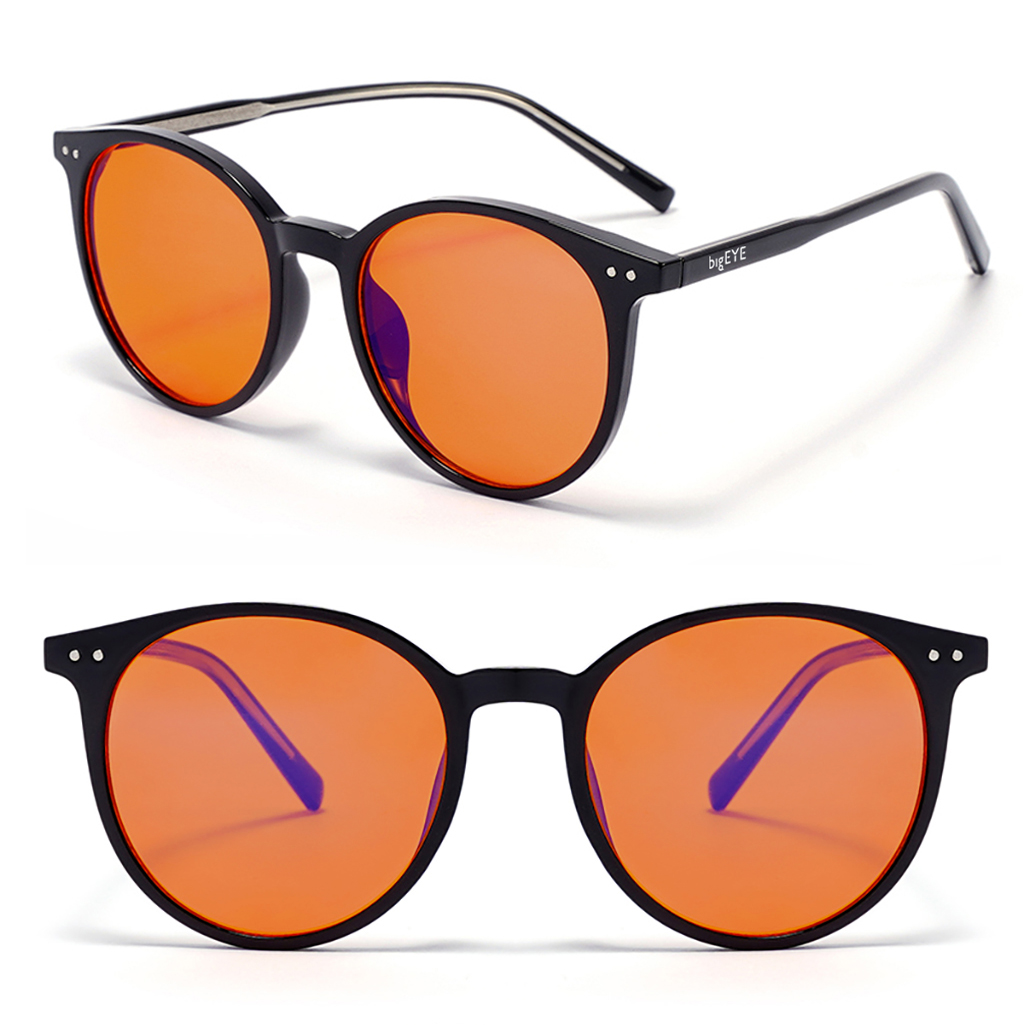 Pomarańczowa barwa soczewek skutecznie filtruje światło emitowane przez ekrany oraz sztuczne źródła światła. Okulary biohacking.